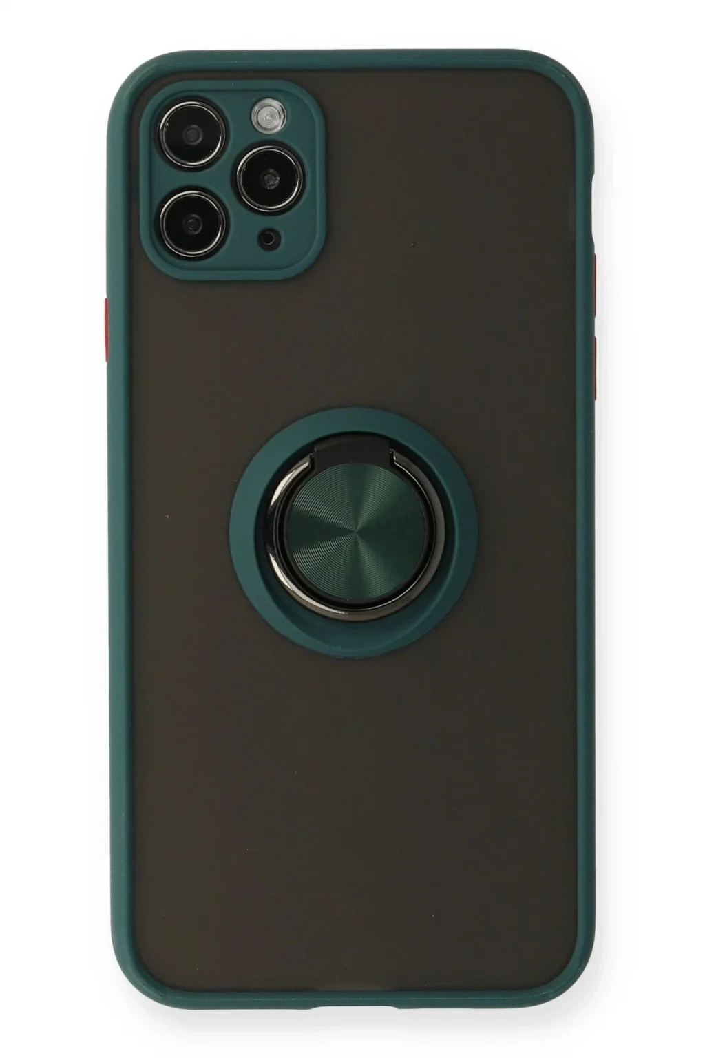 iPhone 11 Pro Kılıf Montreal Yüzüklü Silikon Kapak - Yeşil-(5796)