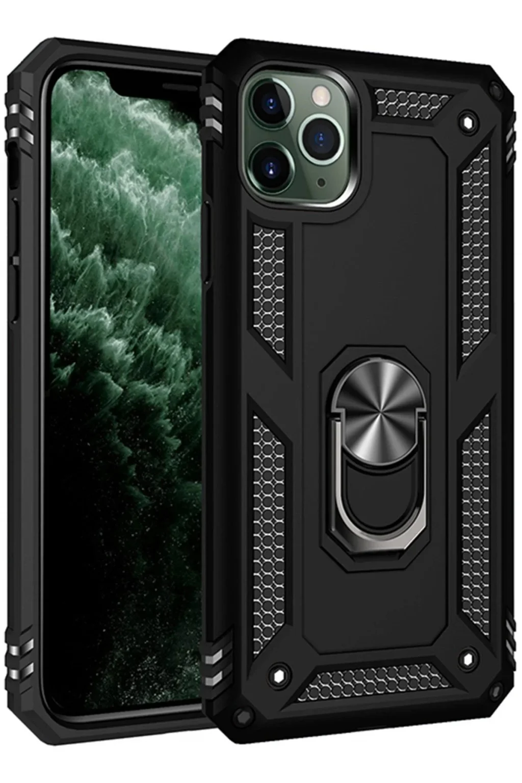 iPhone 11 Pro Max Kılıf Sofya Yüzüklü Silikon Kapak - Siyah-(5796)