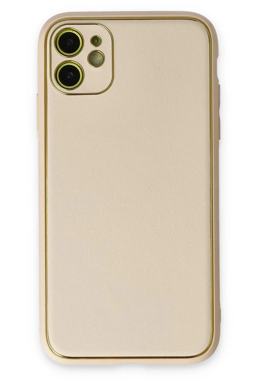 iPhone 12 Kılıf Coco Deri Silikon Kapak - Gold-(5796)