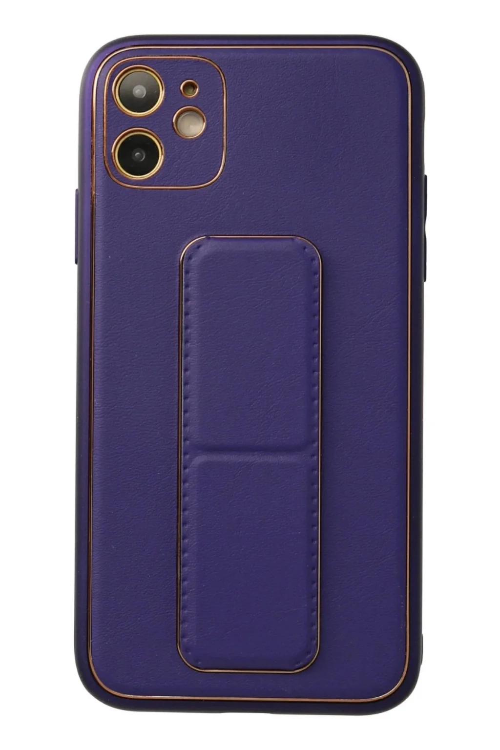 iPhone 12 Kılıf Coco Deri Standlı Kapak - Mor-(5796)