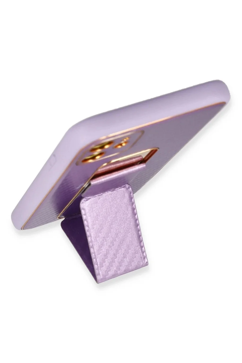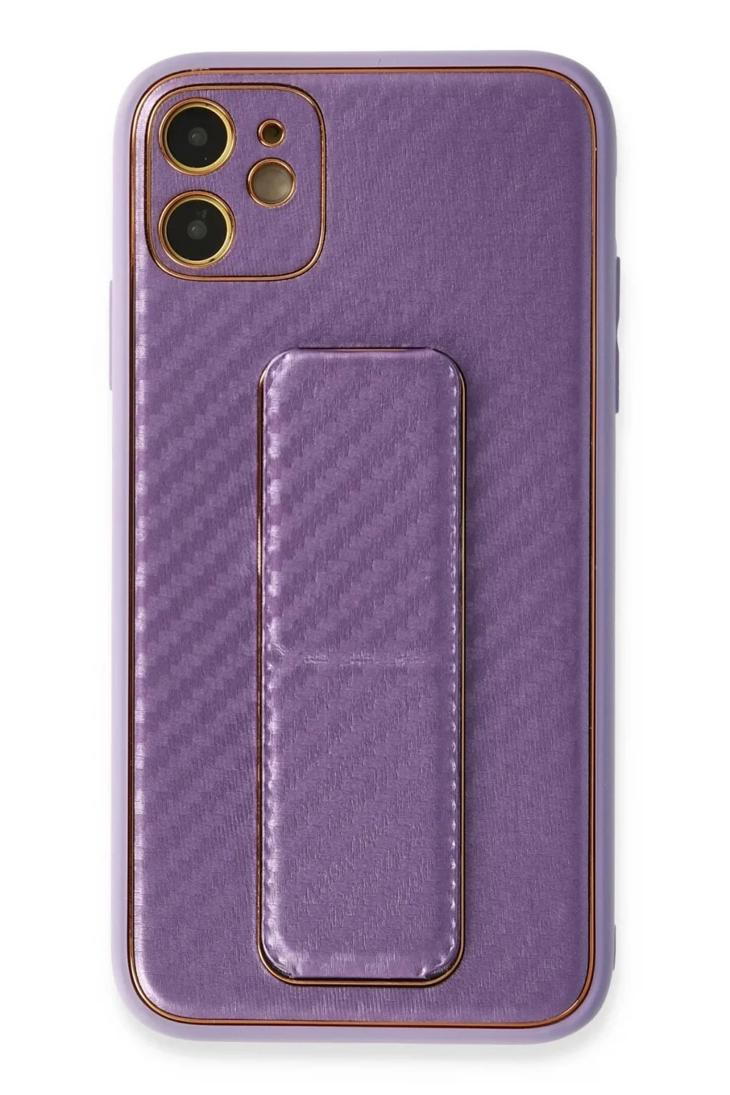 iPhone 12 Kılıf Coco Karbon Standlı Kapak - Mor-(5796)
