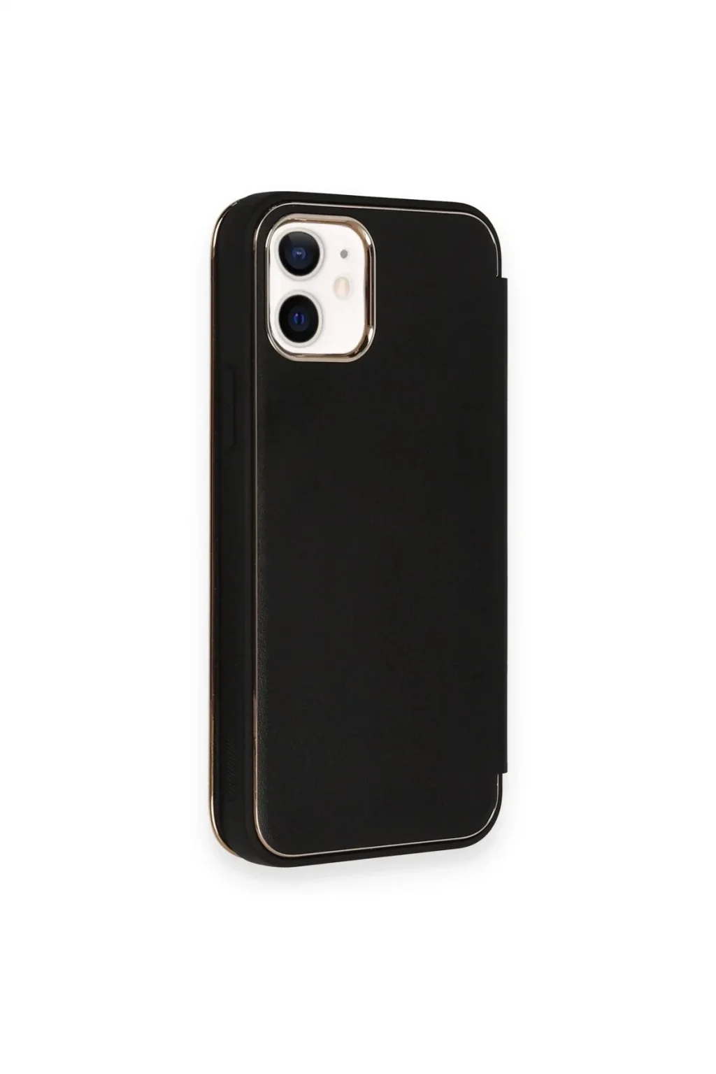 iPhone 12 Kılıf Dolpin Kapaklı - Siyah-(5796)