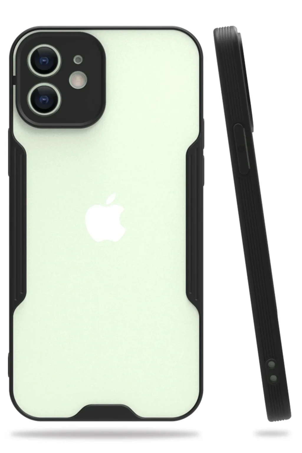 iPhone 12 Kılıf Platin Silikon - Siyah-(5796)