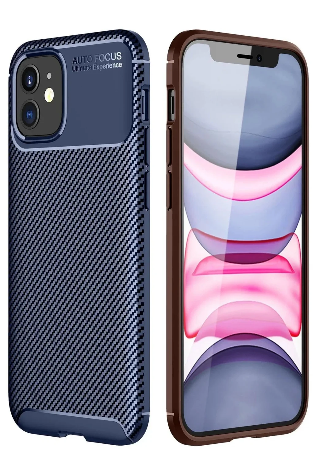 iPhone 12 Mini Kılıf Auto Focus Karbon Kapak - Lacivert-(5796)