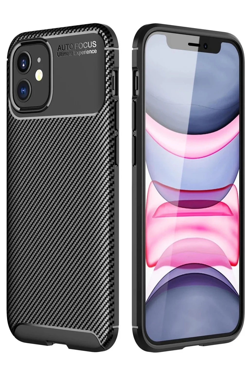 iPhone 12 Mini Kılıf Auto Focus Karbon Kapak - Siyah-(5796)