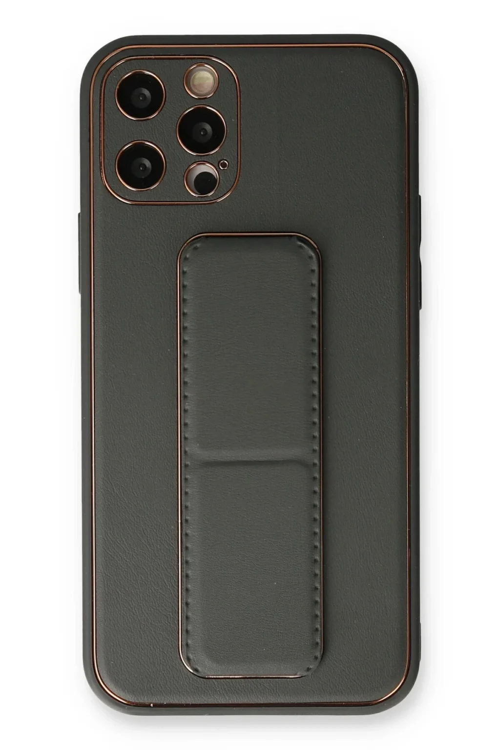 iPhone 12 Pro Kılıf Coco Deri Standlı Kapak - Füme-(5796)