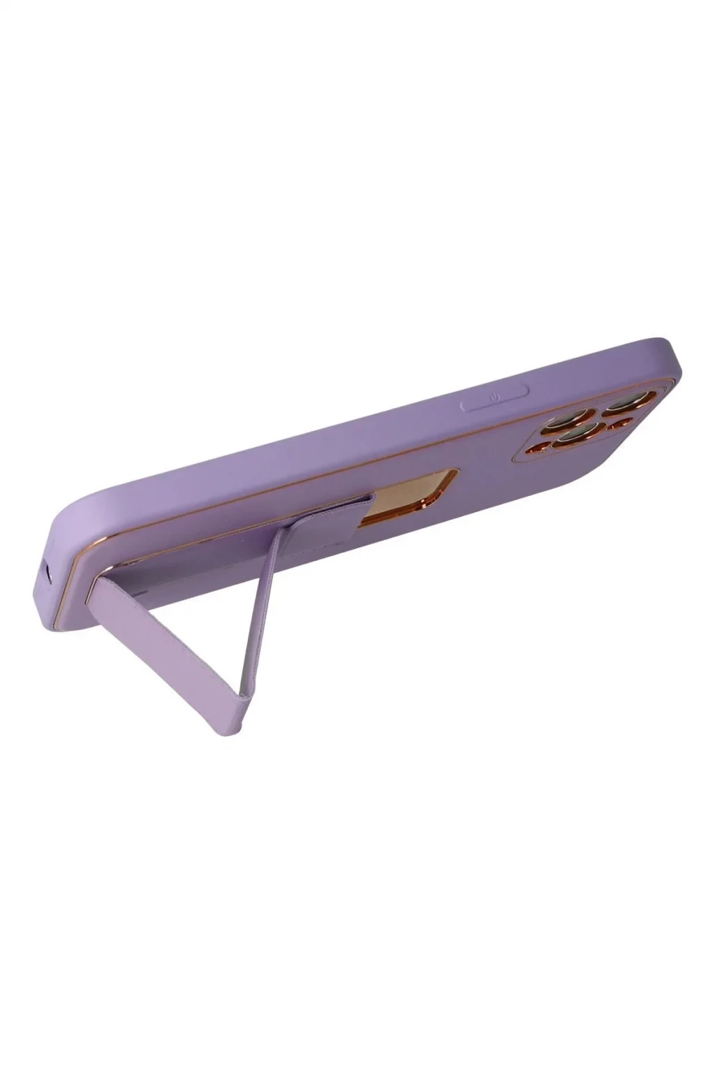 iPhone 12 Pro Kılıf Coco Deri Standlı Kapak - Lila-(5796)