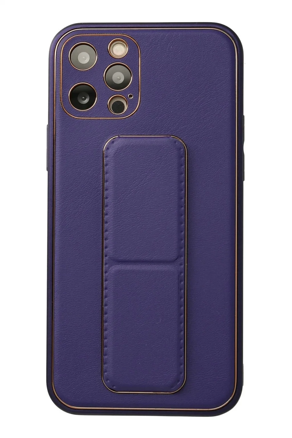 iPhone 12 Pro Kılıf Coco Deri Standlı Kapak - Mor-(5796)