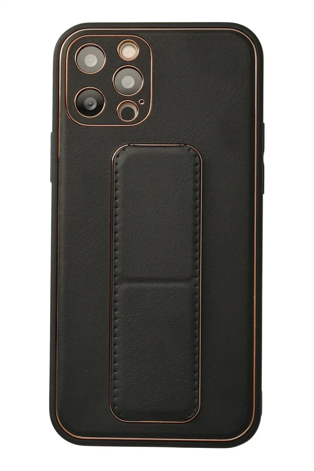 iPhone 12 Pro Kılıf Coco Deri Standlı Kapak - Siyah-(5796)