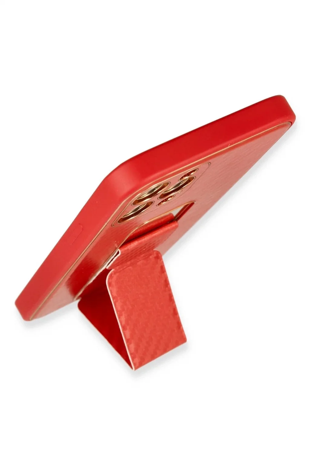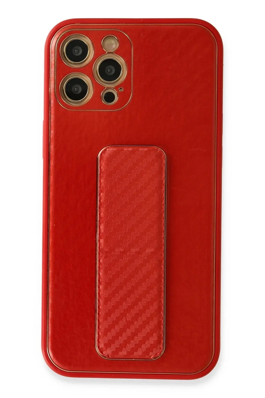 iPhone 12 Pro Kılıf Coco Karbon Standlı Kapak - Kırmızı-(5796)