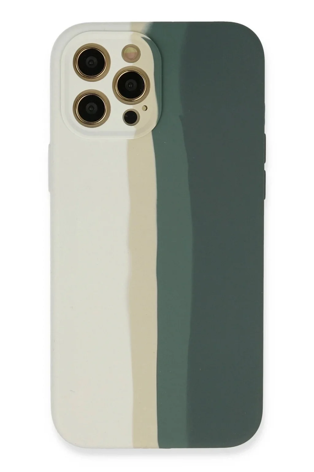 iPhone 12 Pro Kılıf Ebruli Lansman Silikon - Beyaz-Gri-(5796)