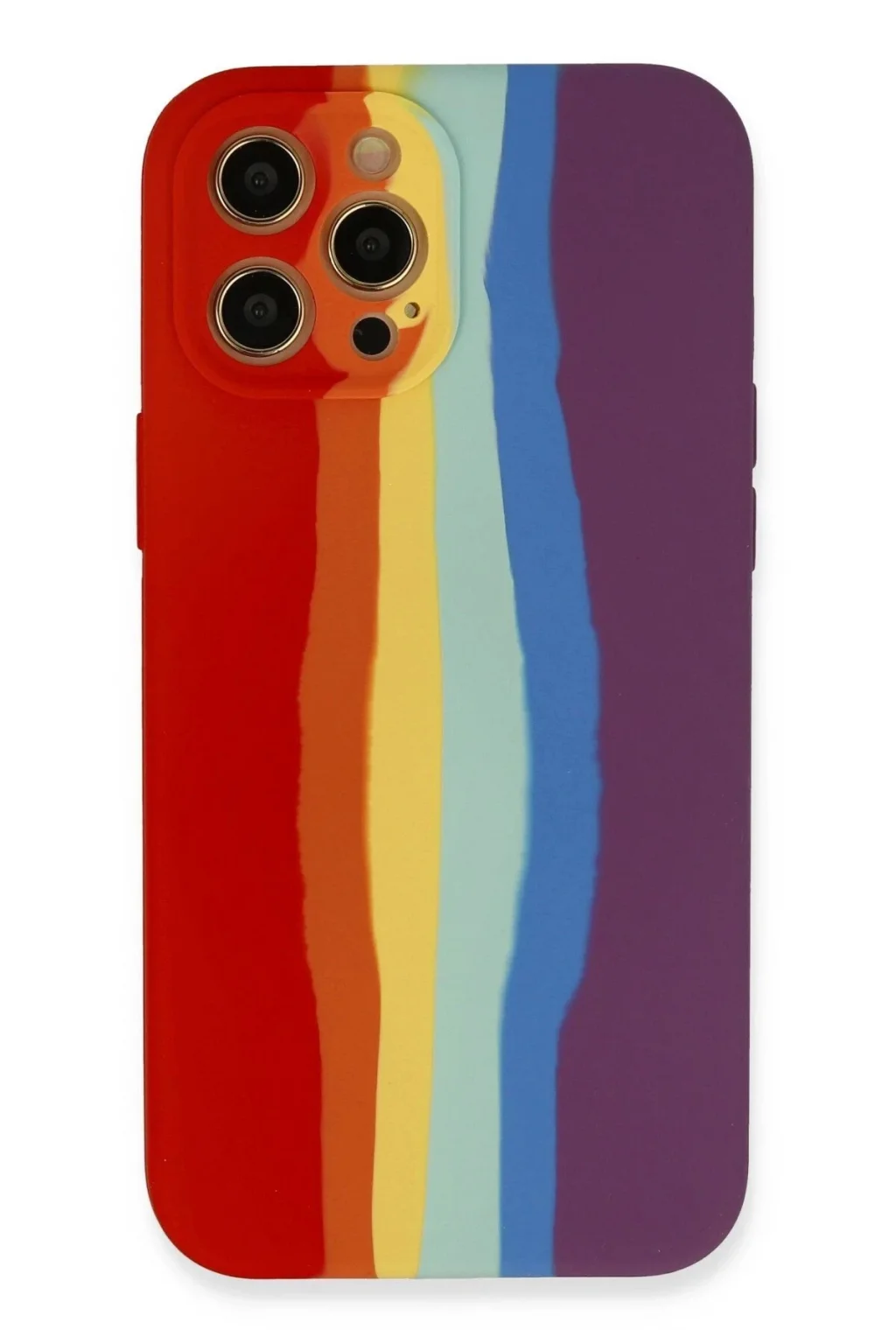 iPhone 12 Pro Kılıf Ebruli Lansman Silikon - Kırmızı-Mor-(5796)