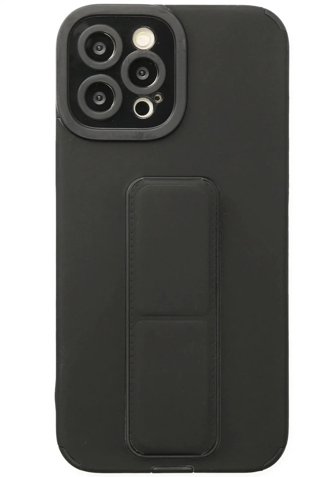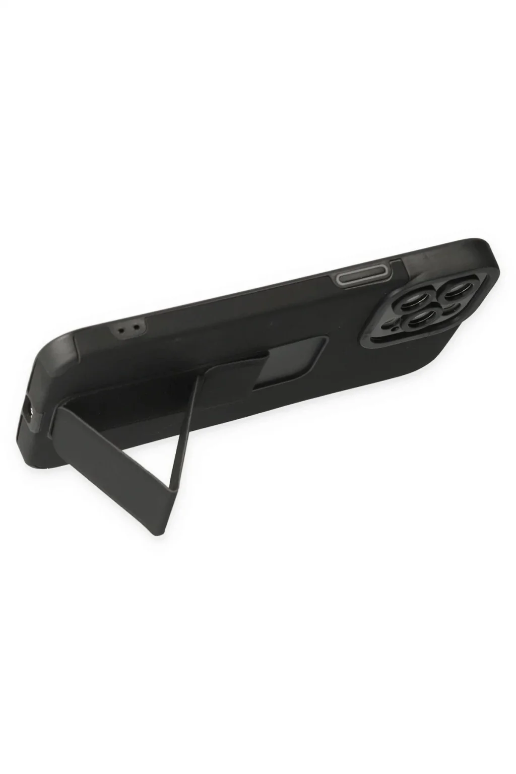 iPhone 12 Pro Kılıf Mega Standlı Silikon - Siyah-(5796)