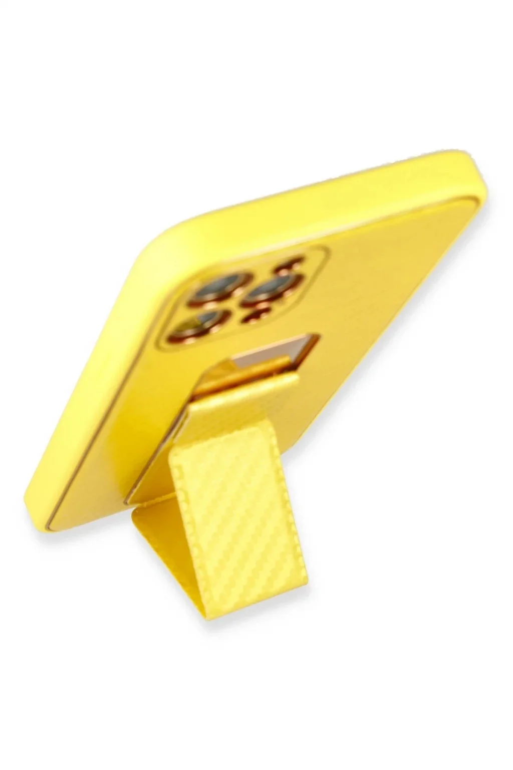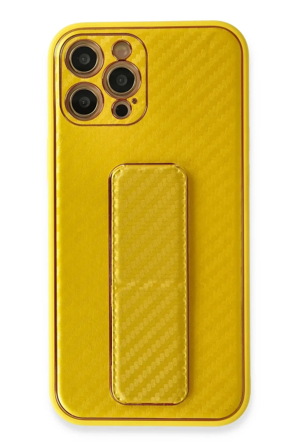 iPhone 12 Pro Max Kılıf Coco Karbon Standlı Kapak - Sarı-(5796)