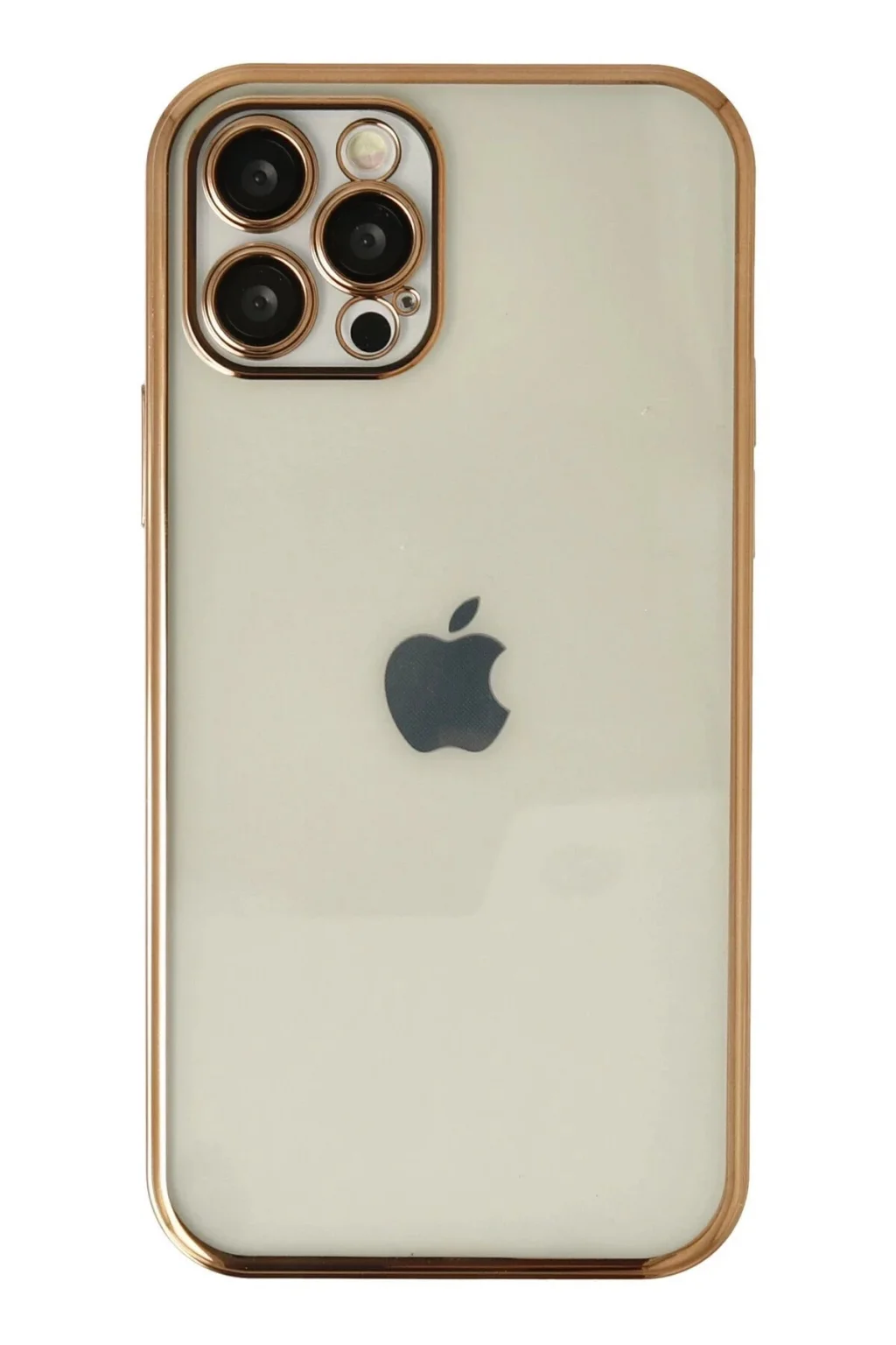 iPhone 12 Pro Max Kılıf Lensli Silikon - Gold-(5796)