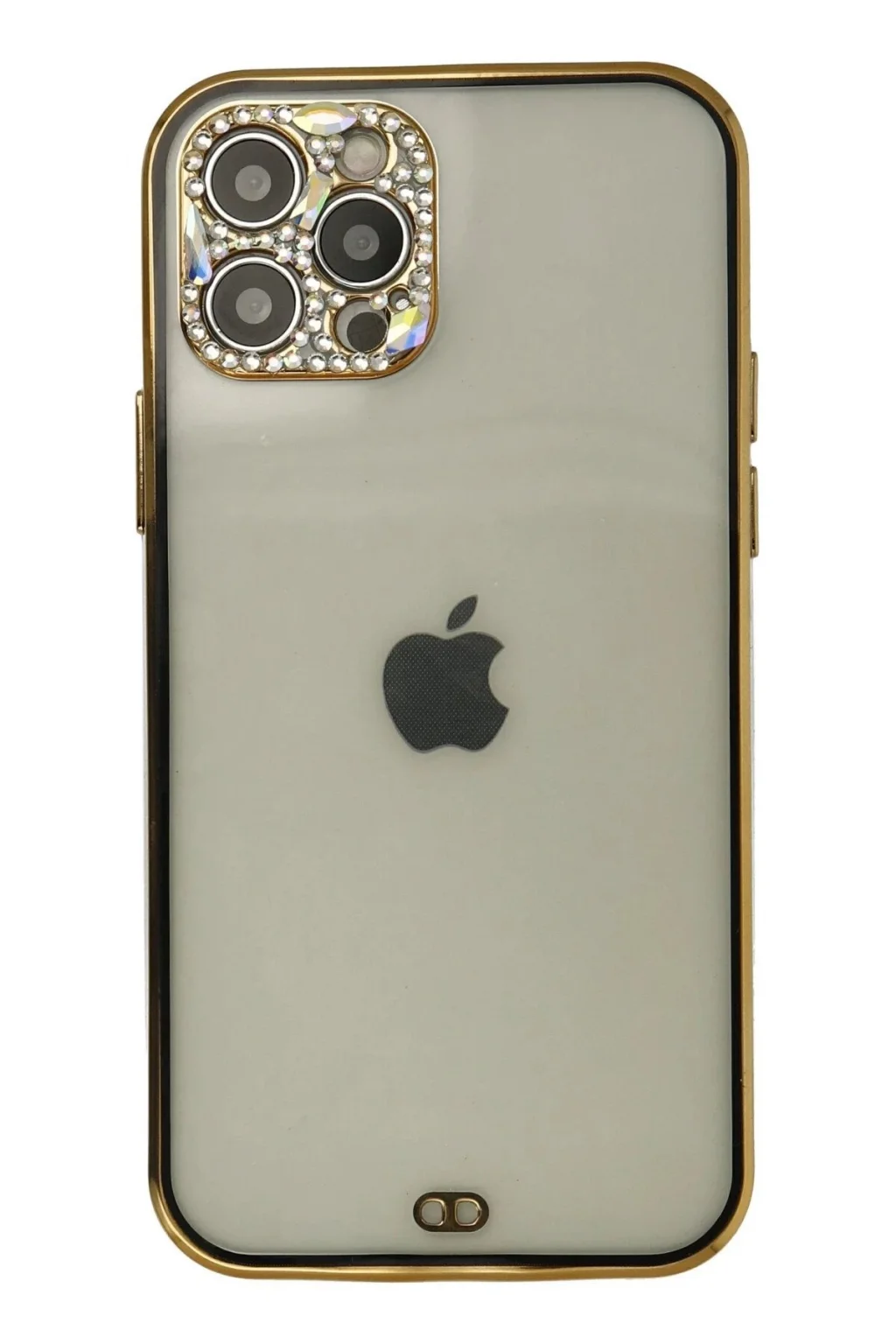 iPhone 12 Pro Max Kılıf Liva Taşlı Silikon - Siyah-(5796)