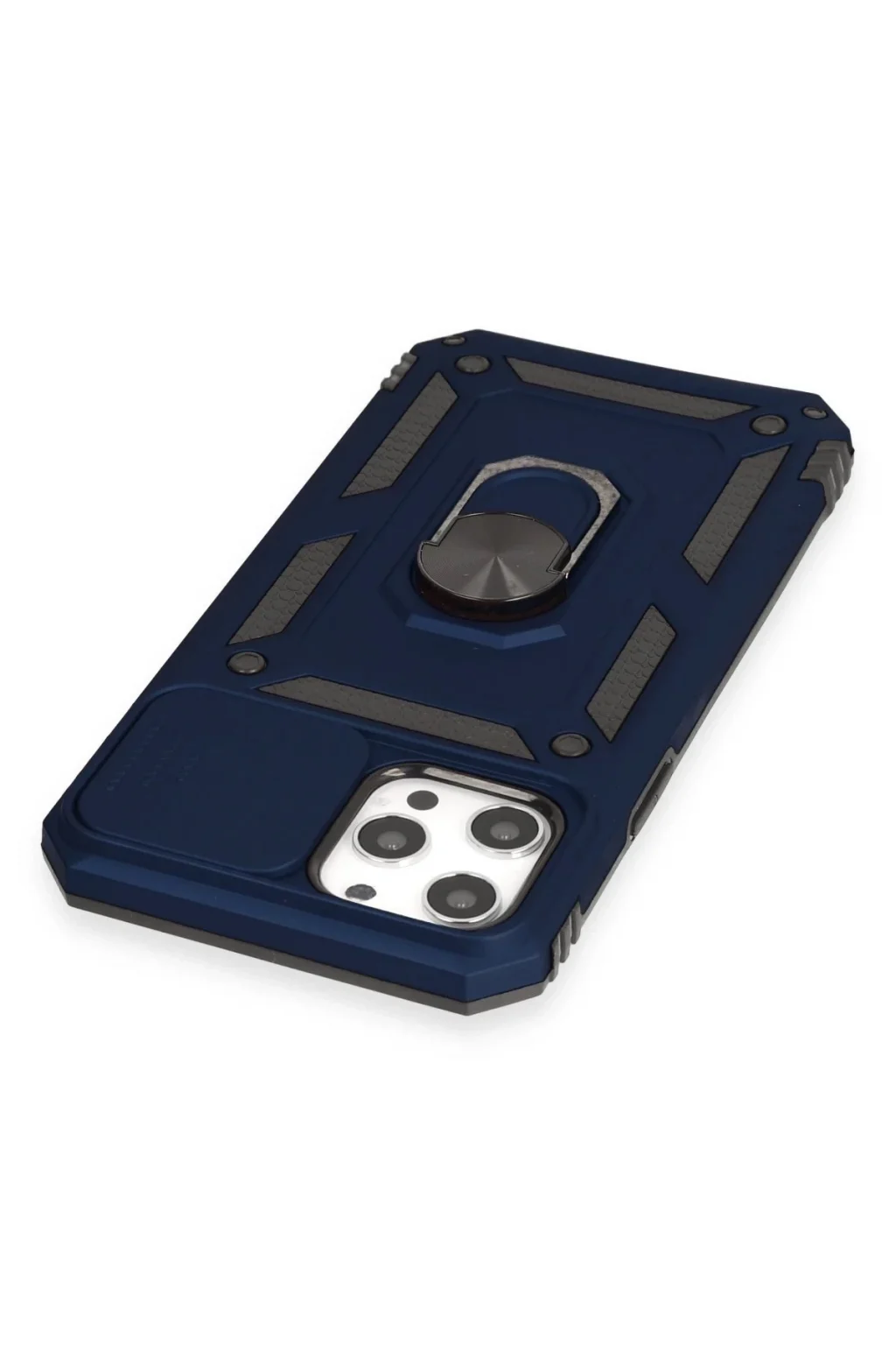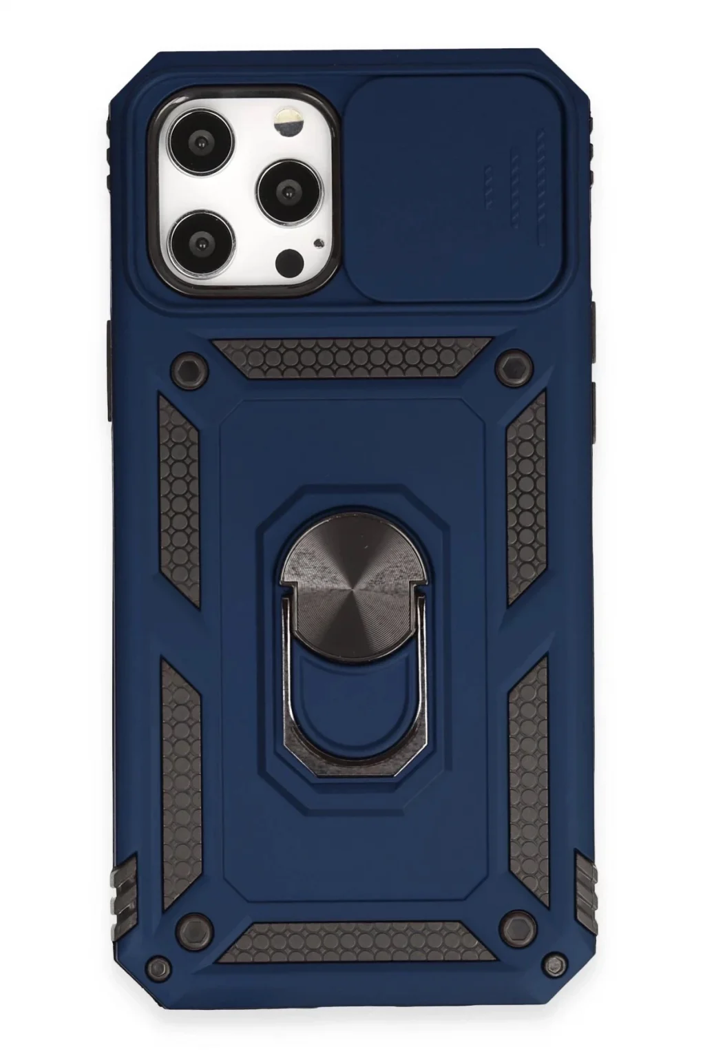 iPhone 12 Pro Max Kılıf Pars Lens Yüzüklü Silikon - Lacivert-(5796)