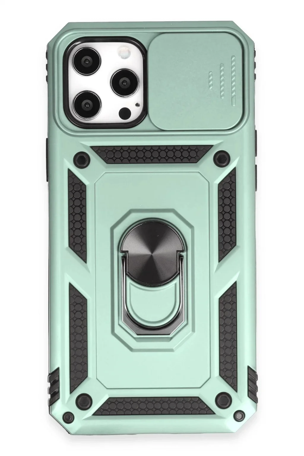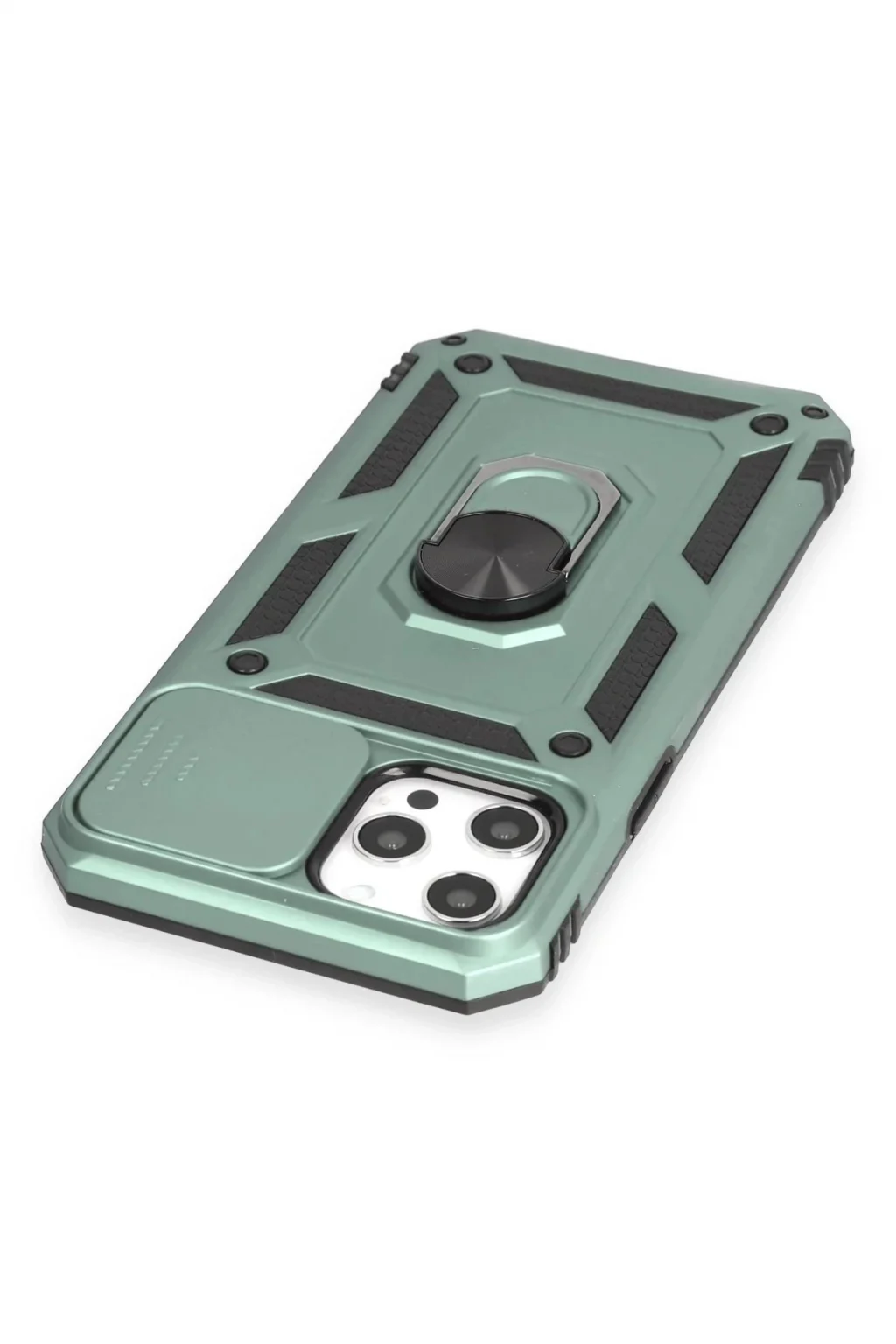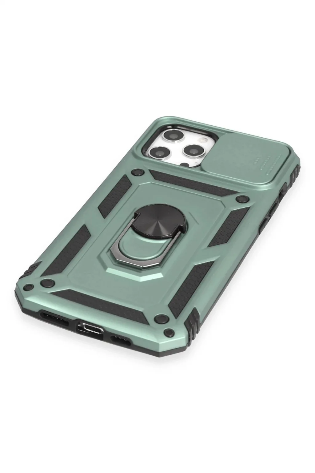 iPhone 12 Pro Max Kılıf Pars Lens Yüzüklü Silikon - Yeşil-(5796)