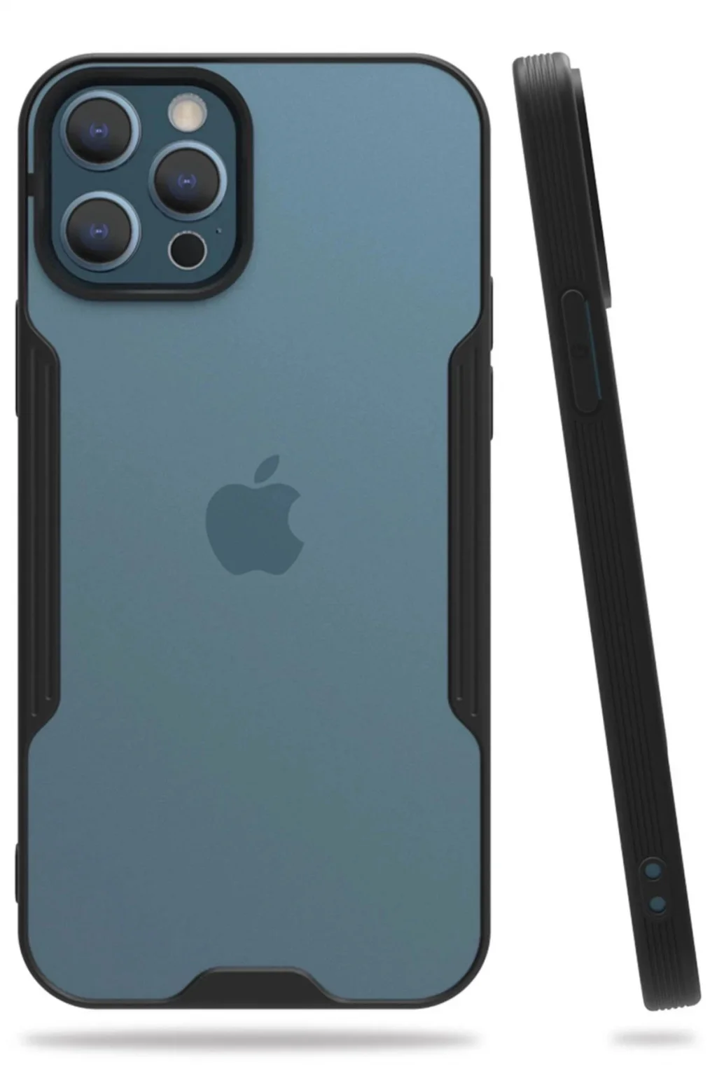 iPhone 12 Pro Max Kılıf Platin Silikon - Siyah-(5796)