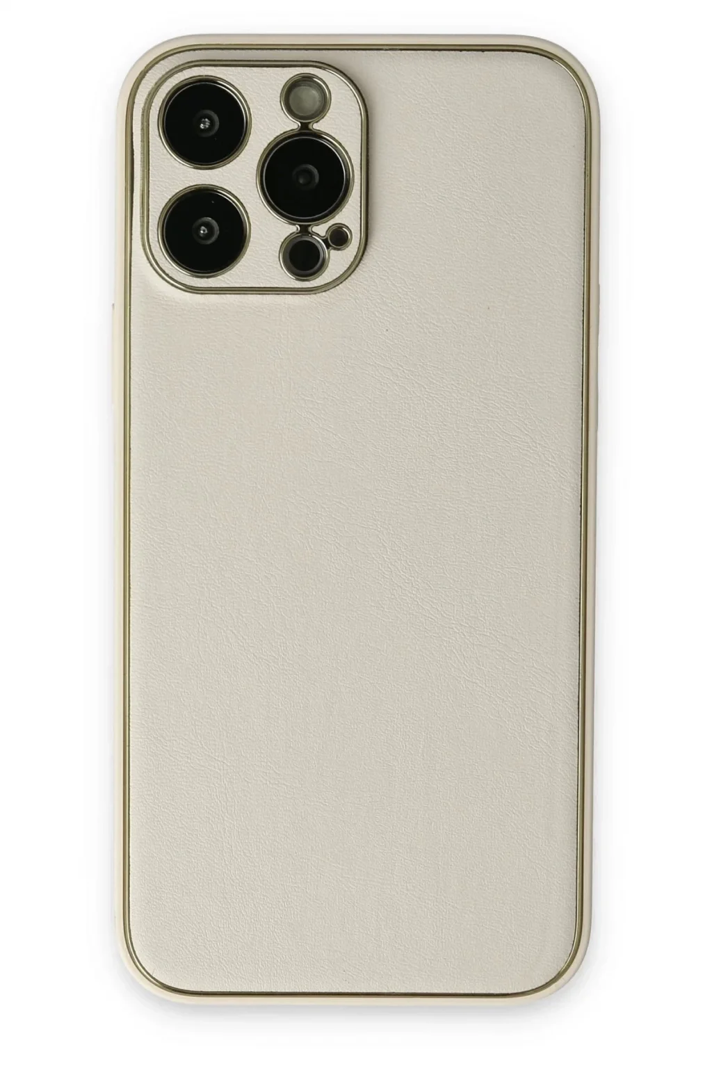 iPhone 13 Pro Kılıf Coco Deri Silikon Kapak - Beyaz-(5796)