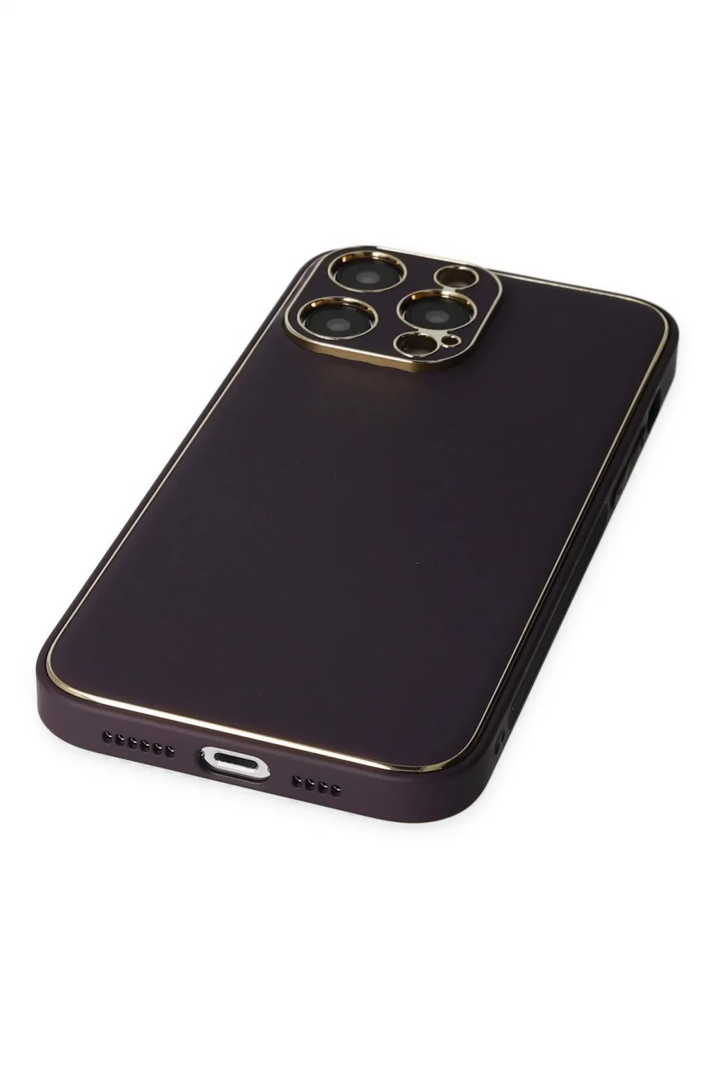 iPhone 13 Pro Kılıf Coco Deri Silikon Kapak - Derin Mor-(5796)