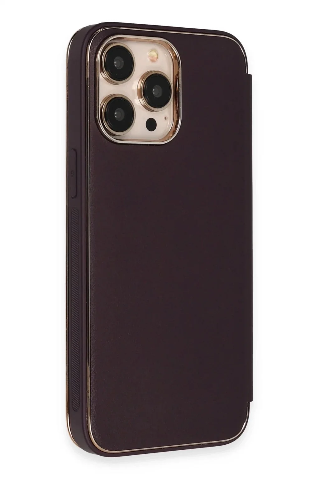 iPhone 13 Pro Kılıf Dolpin Kapaklı - Derin Mor-(5796)