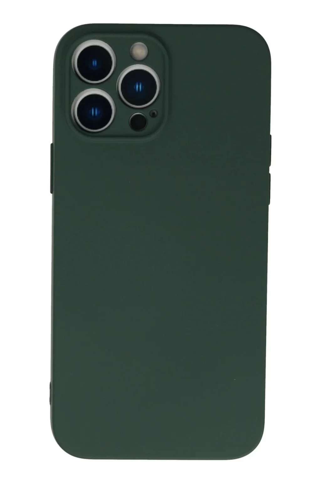 iPhone 13 Pro Kılıf Nano içi Kadife Silikon - Koyu Yeşil-(5796)
