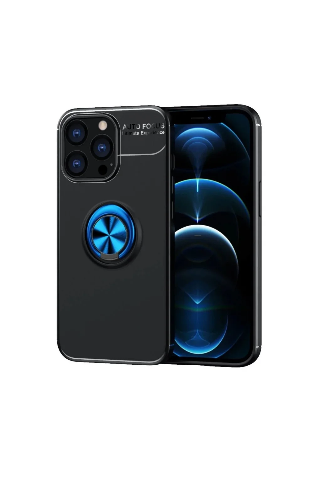 iPhone 13 Pro Kılıf Range Yüzüklü Silikon - Siyah-Mavi-(5796)