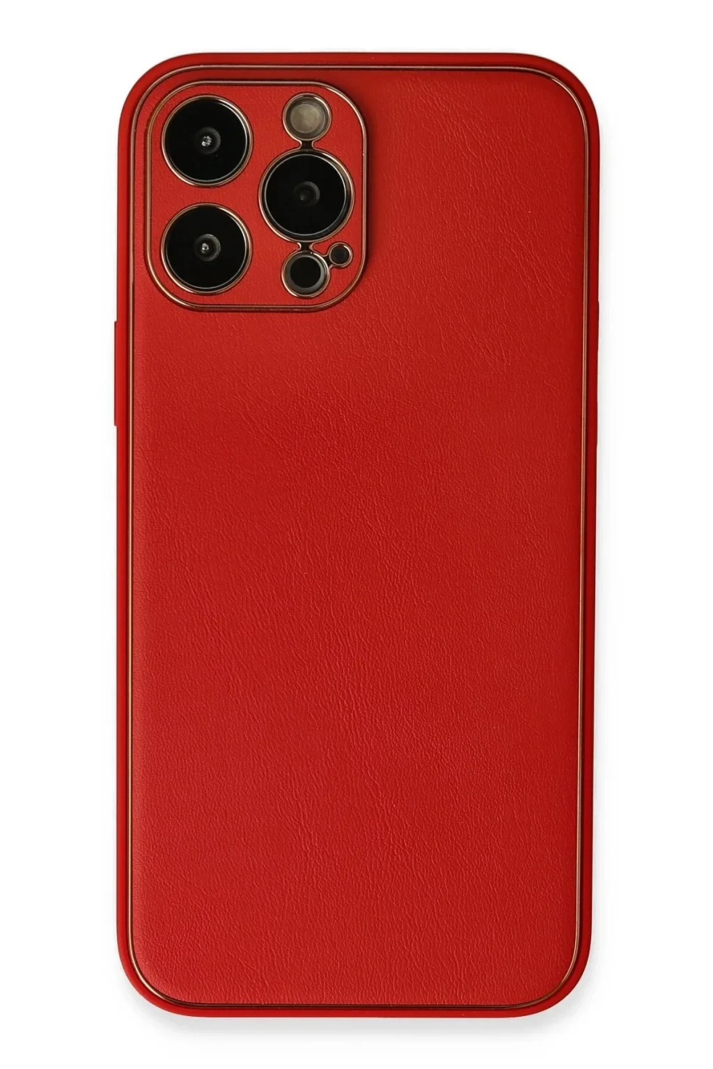 iPhone 13 Pro Max Kılıf Coco Deri Silikon Kapak - Kırmızı-(5796)