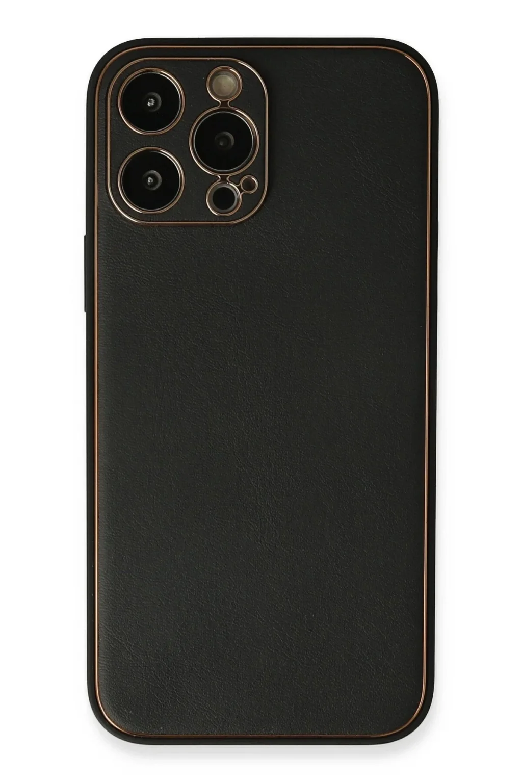 iPhone 13 Pro Max Kılıf Coco Deri Silikon Kapak - Siyah-(5796)