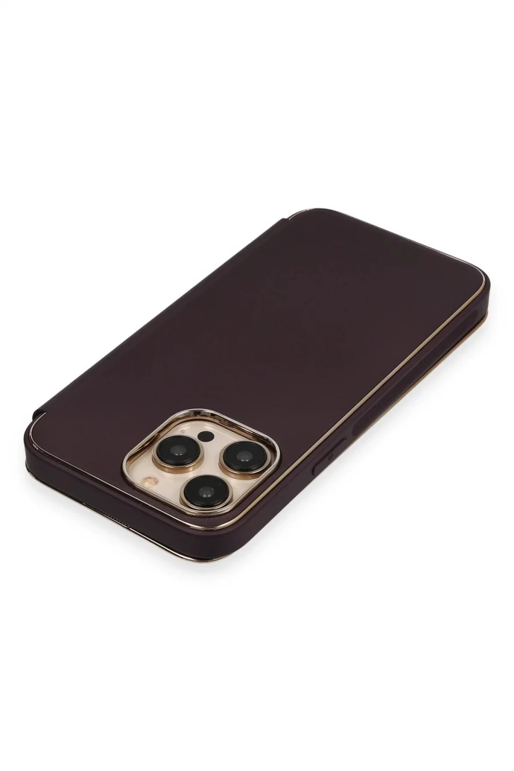 iPhone 13 Pro Max Kılıf Dolpin Kapaklı - Derin Mor-(5796)