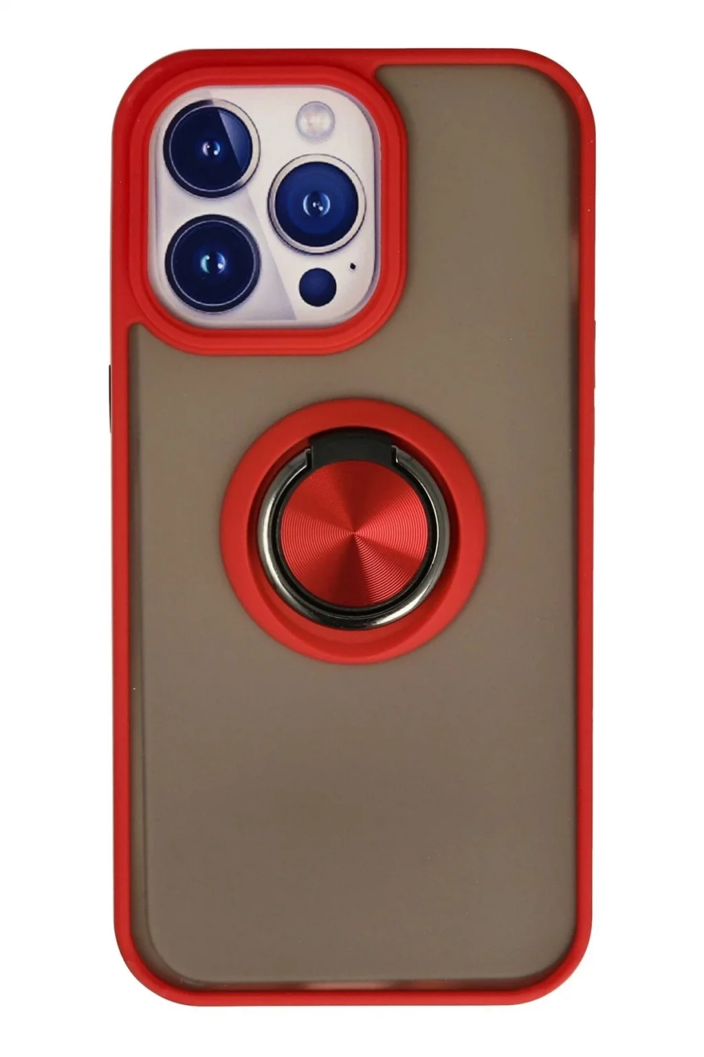 iPhone 13 Pro Max Kılıf Montreal Yüzüklü Silikon Kapak - Kırmızı-(5796)