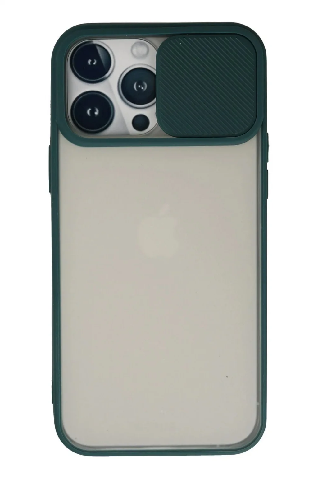 iPhone 13 Pro Max Kılıf Palm Buzlu Kamera Sürgülü Silikon - Yeşil-(5796)