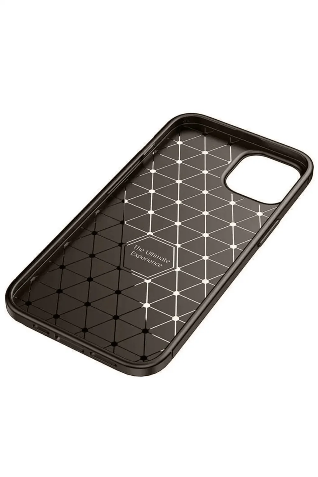 iPhone 14 Kılıf Auto Focus Karbon Kapak - Kahverengi-(5796)