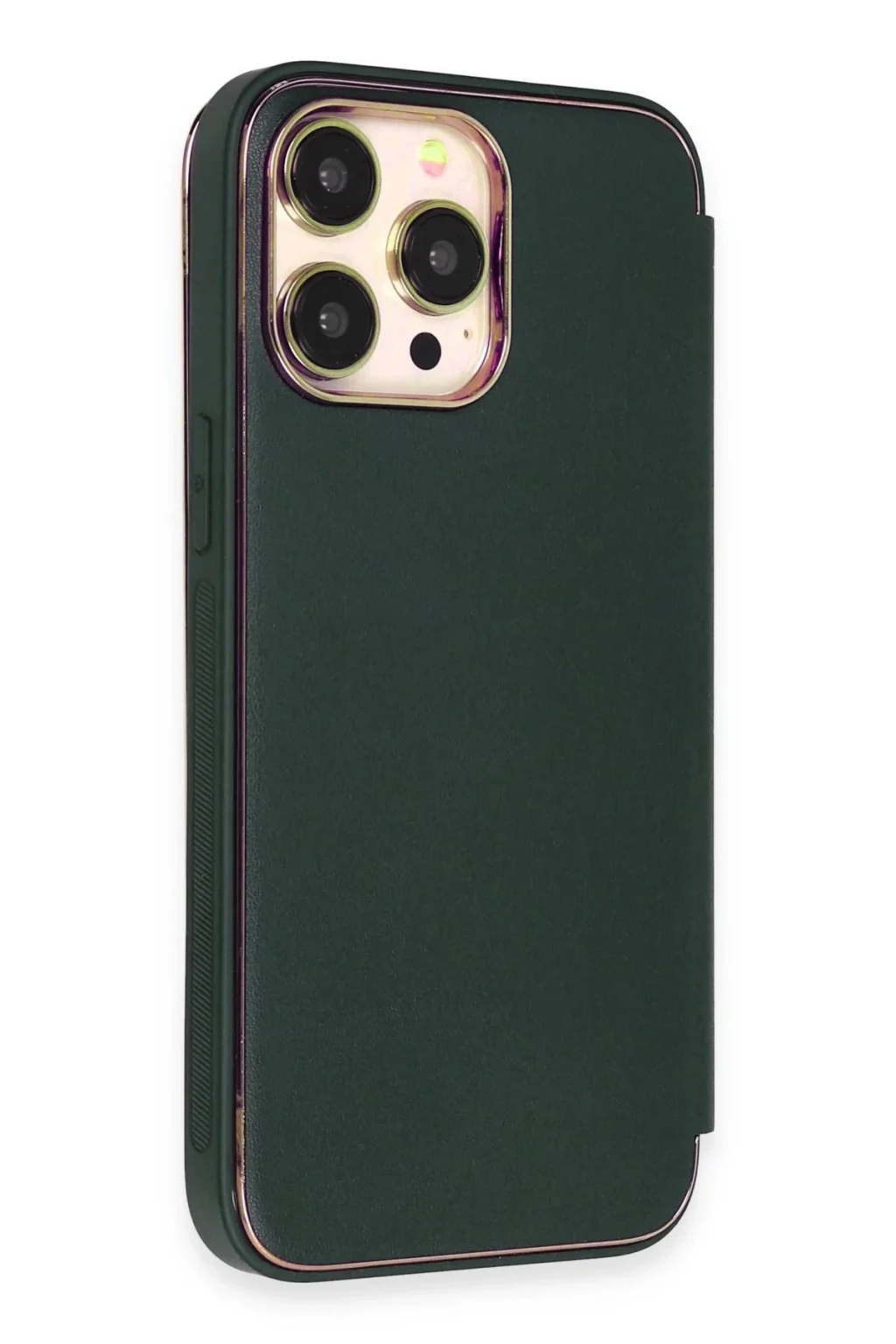 iPhone 14 Pro Kılıf Dolpin Kapaklı - Koyu Yeşil-(5796)