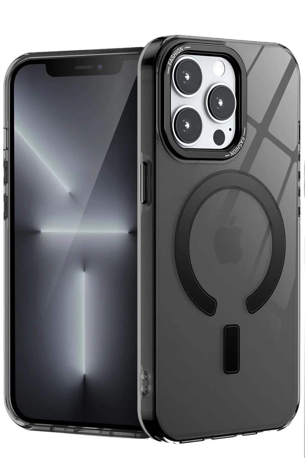 iPhone 14 Pro Kılıf Troy Magsafe Kapak - Siyah-(5796)
