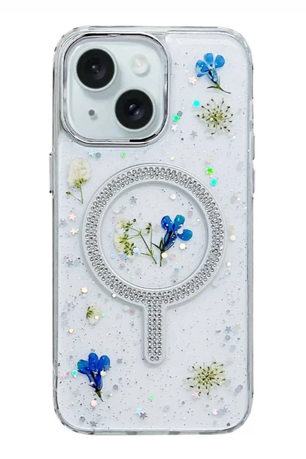 iPhone 15 Flower Magsafe Kapak - Pembe-(5796)