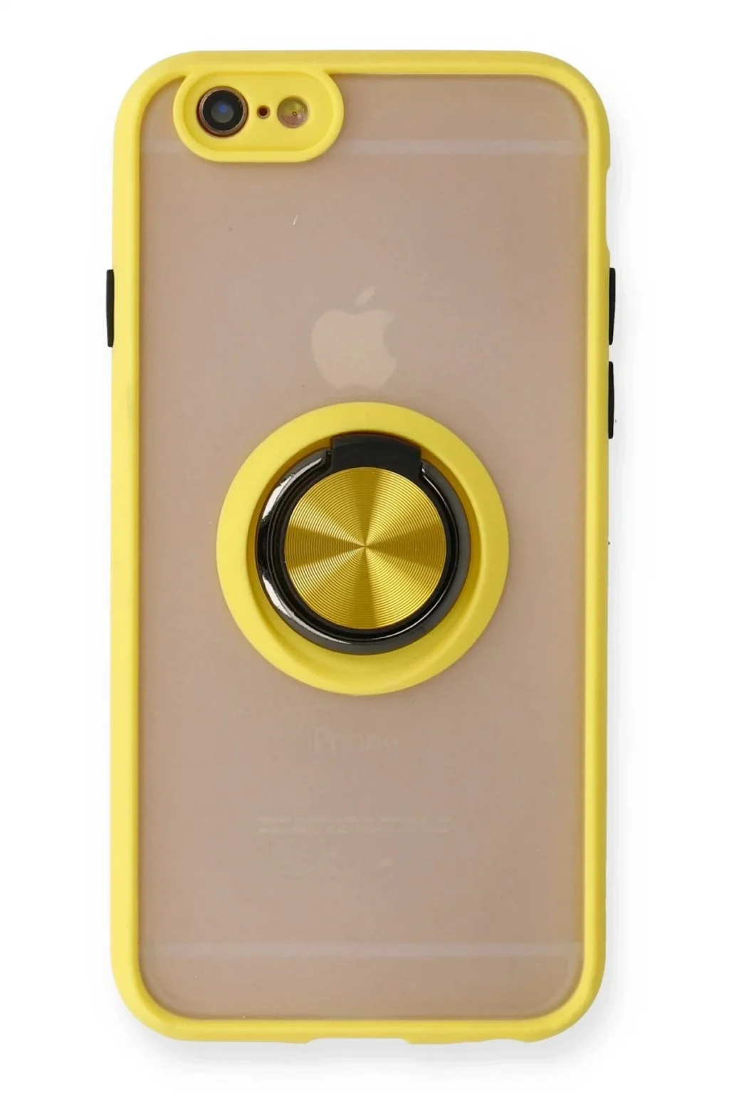 iPhone 6 Kılıf Montreal Yüzüklü Silikon Kapak - Sarı-(5796)