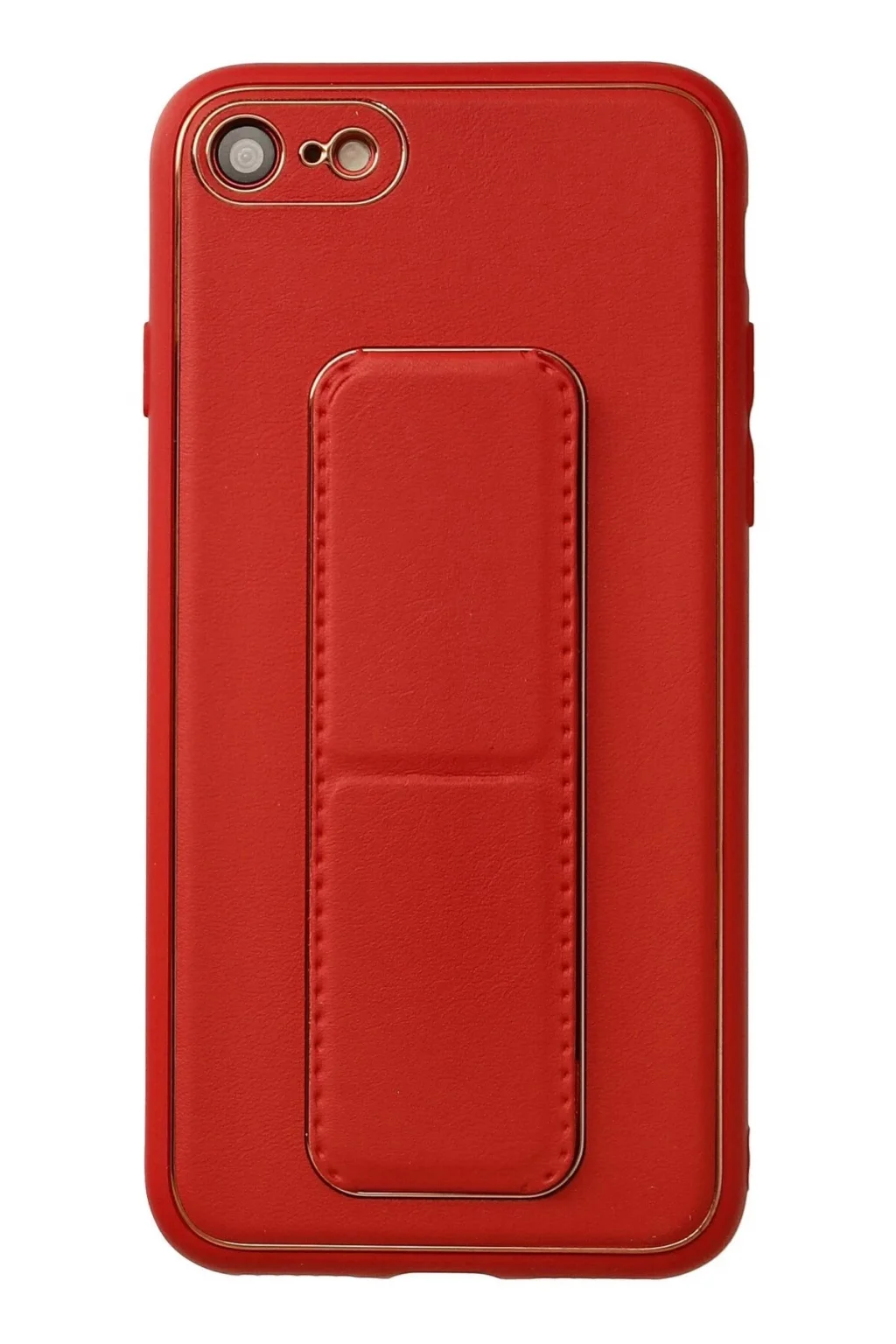iPhone 7 Kılıf Coco Deri Standlı Kapak - Kırmızı-(5796)