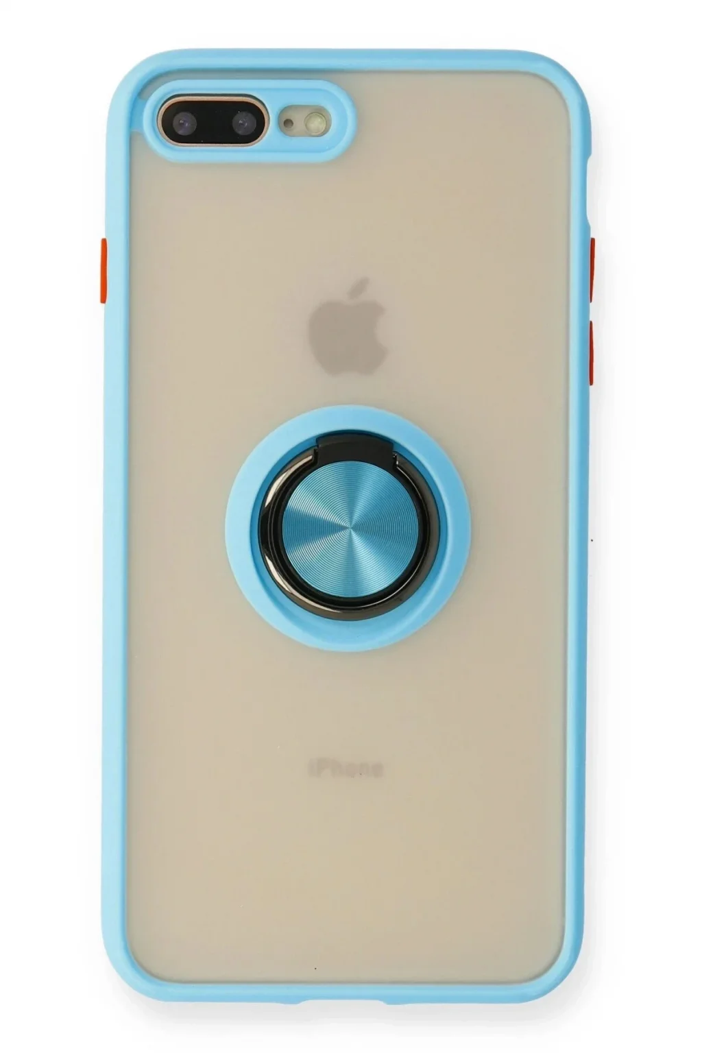 iPhone 7 Plus Kılıf Montreal Yüzüklü Silikon Kapak - Buz Mavi-(5796)