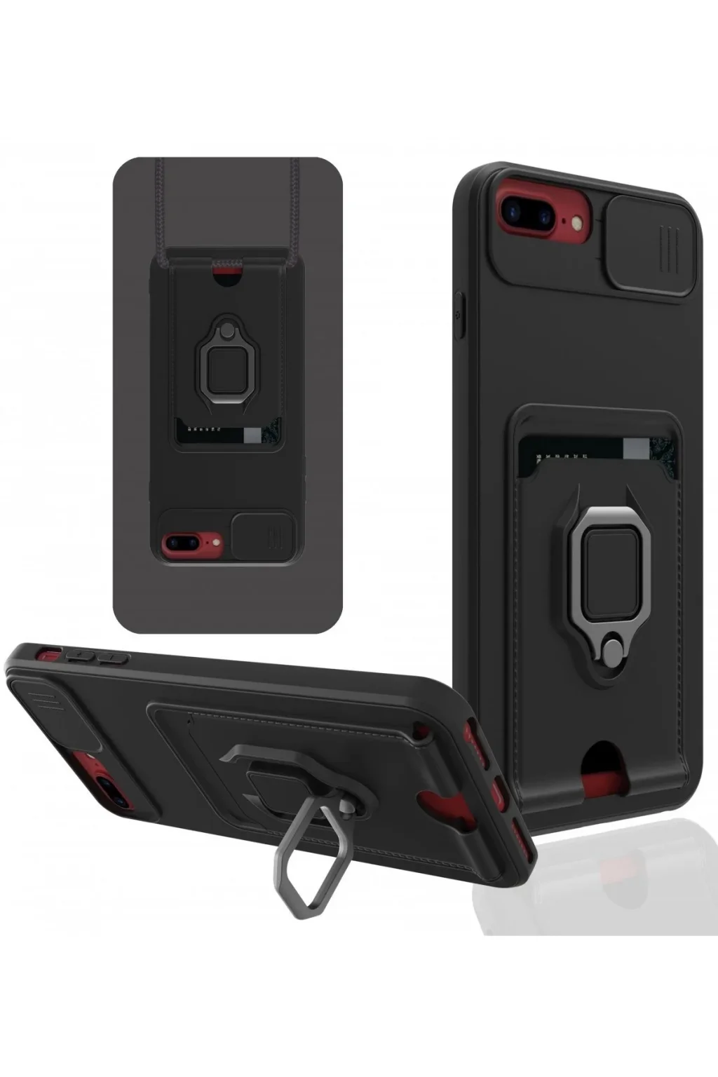 iPhone 7 Plus Kılıf Zuma Kartvizitli Yüzüklü Silikon - Siyah-(5796)