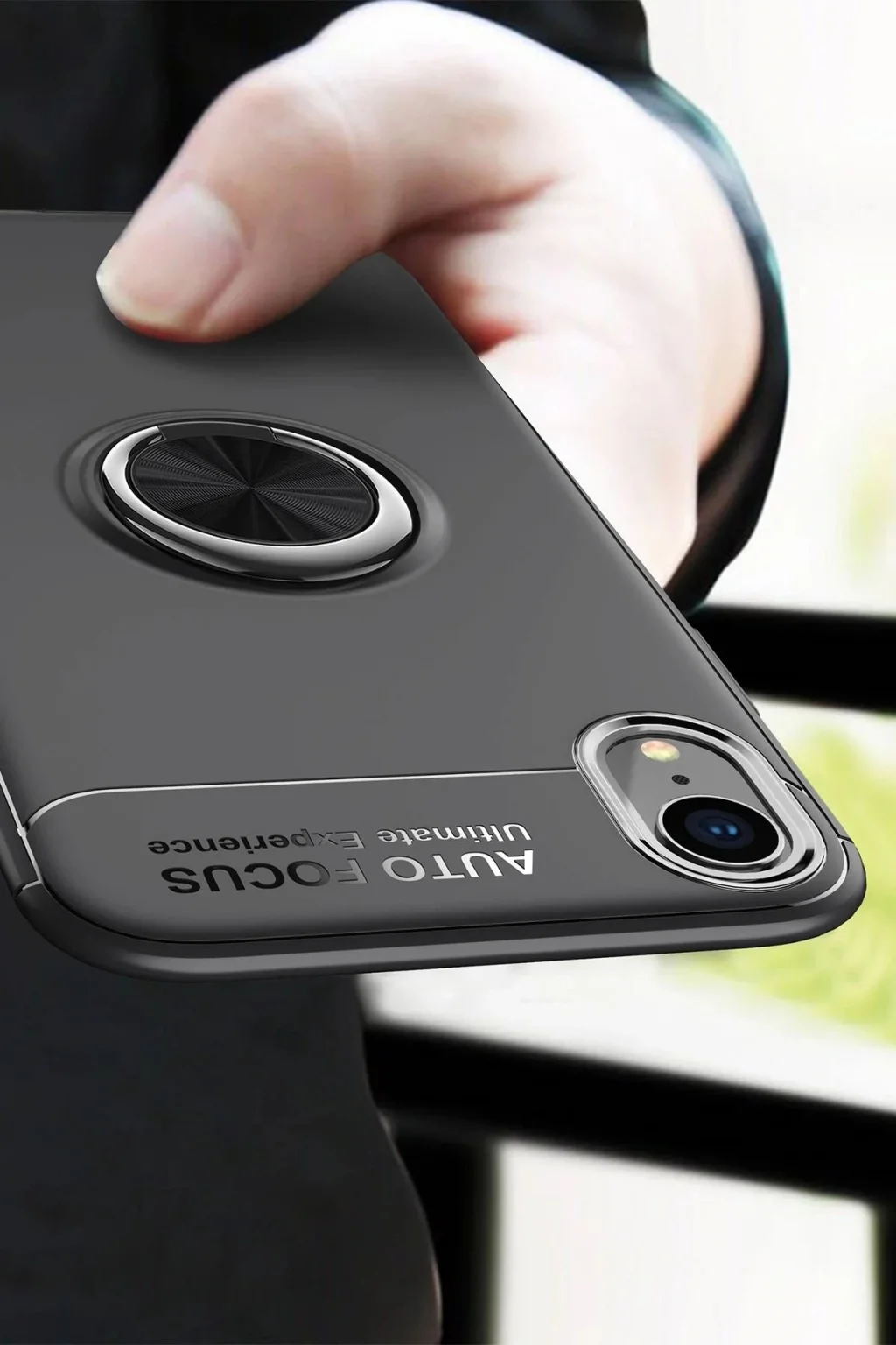 iPhone XR Kılıf Range Yüzüklü Silikon - Siyah-Mavi-(5796)