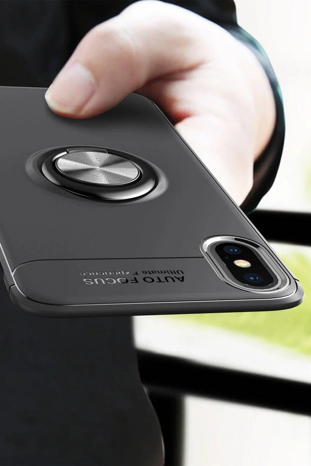 iPhone XS Kılıf Range Yüzüklü Silikon - Kırmızı-(5796)
