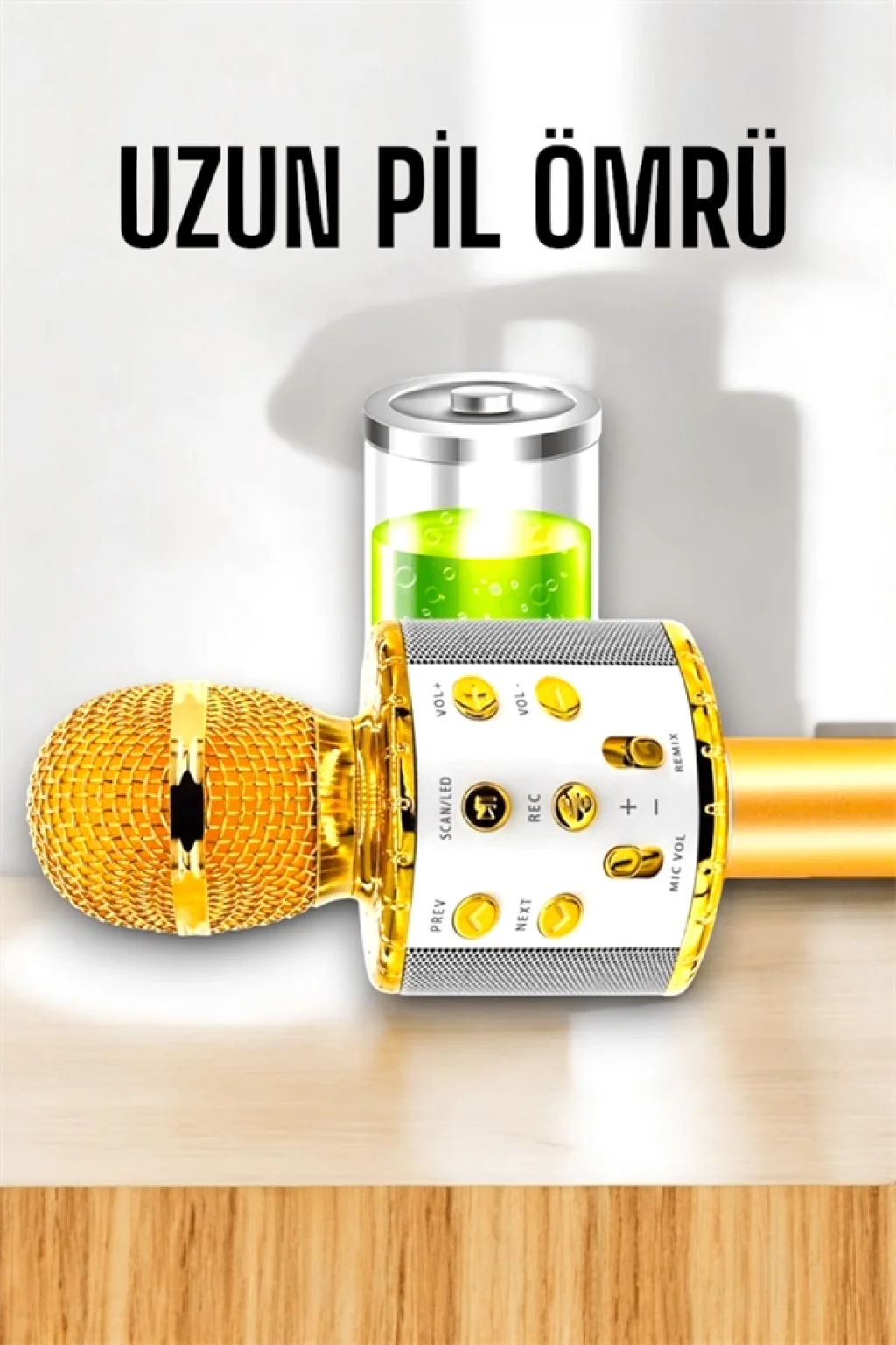 Evinizi bir konser alanına çevirecek karaoke mikrofonuyla tanışın! USB ve AUX girişleri sayesinde çok yönlü kullanım imkanı sunan bu cihaz, Bluetooth bağlantısı ile kablosuz müzik keyfi yaşatır. Yüksek ses kalitesi ve yankı efektleriyle arkadaşlarınızla unutulmaz anlar yaşayın. Dahili şarj edilebilir pili sayesinde uzun pil ömrüyle saatlerce kesintisiz eğlence sağlar. İster doğum günlerinde, ister parti gecelerinde, bu mikrofon her anınızda yanınızda. Kendinize ya da sevdiklerinize müzik dolu bir hediye seçeneği sunun!Ölçüleri : 25 x 9,5 x 8,5 cm.