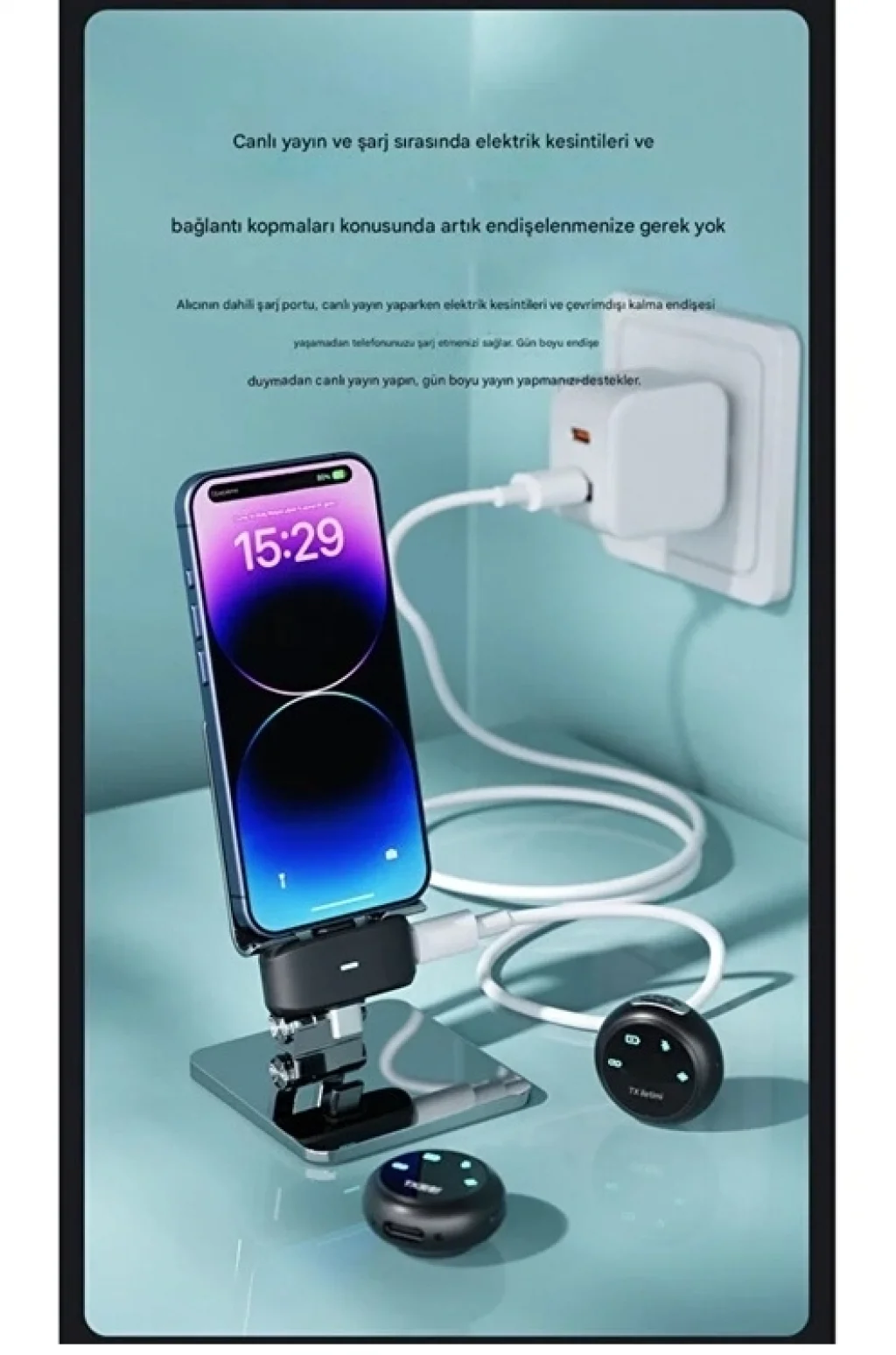 Kablosuz Profesyonel İkili Yayın Yaka Mikrofonu Şarj Kutu Mıknatıslı Typce Lightning Çıkış Mikrofon