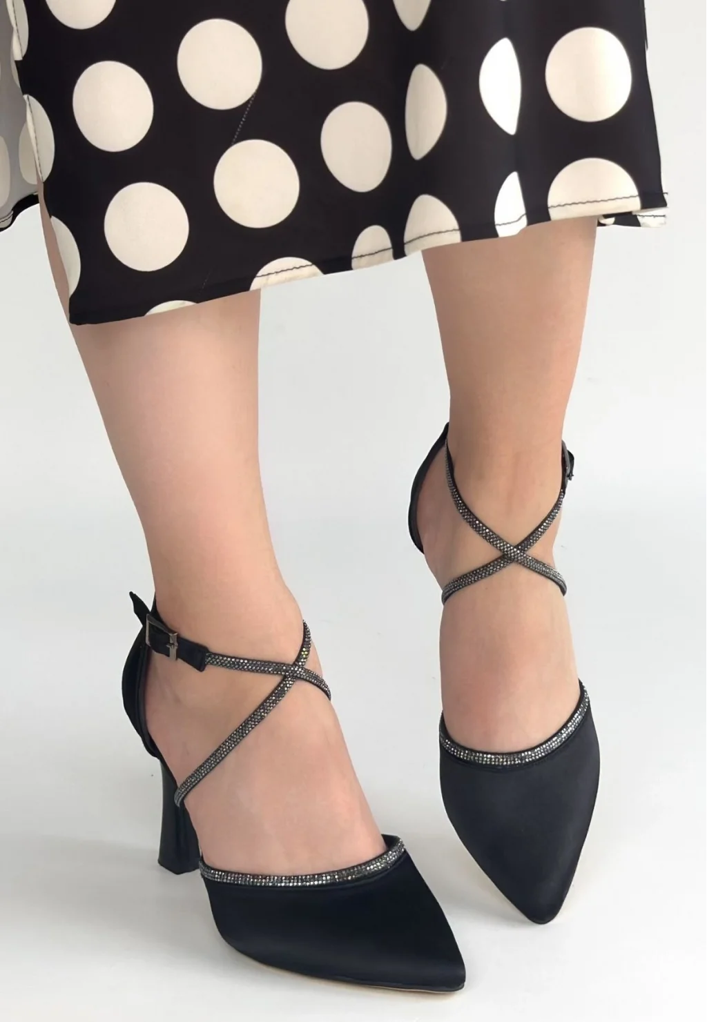 Kanji Siyah Saten Topuklu Ayakkabı