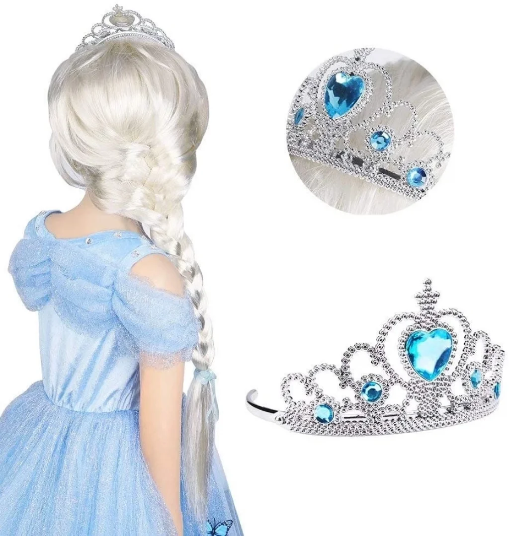Karlar Ülkesi Elsa Mavi Kalpli Taç Ve Mavi Asa Seti Çocuk Boy