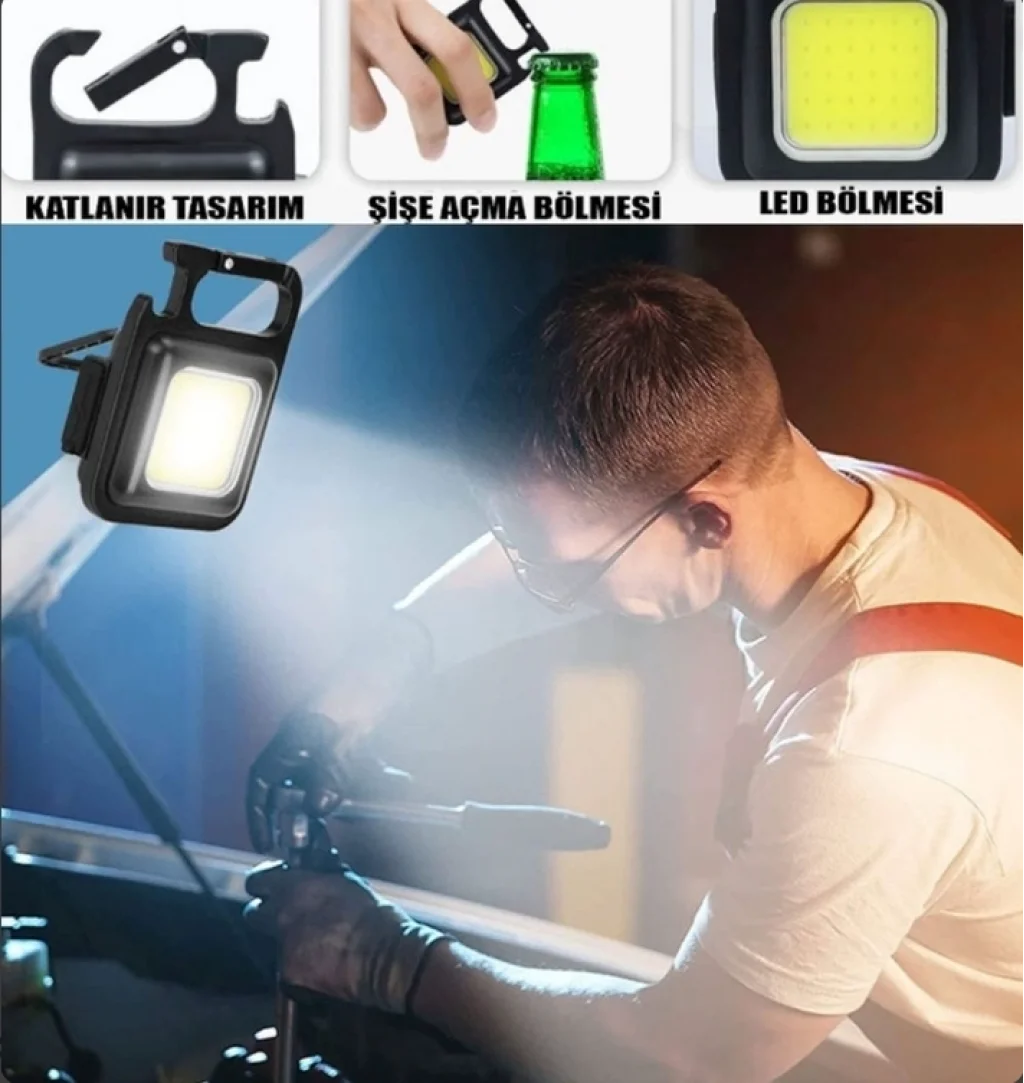 COB anahtarlık el feneri, taşınabilir bir boyutu ve minimalist tasarımı korurken 800 lümen aydınlatma sağlamak için güçlü bir LED kullanır. Bu USB şarj edilebilir el feneri, dahili yüksek kapasiteli şarj edilebilir pil ile çalışır. Aynı zamanda harika bir şişe açacağı. Kamp yapmak, köpek gezdirmek, bir şeyler aramak, tamir etmek ve daha fazlası gibi çeşitli durumlarda kullanılabilir.