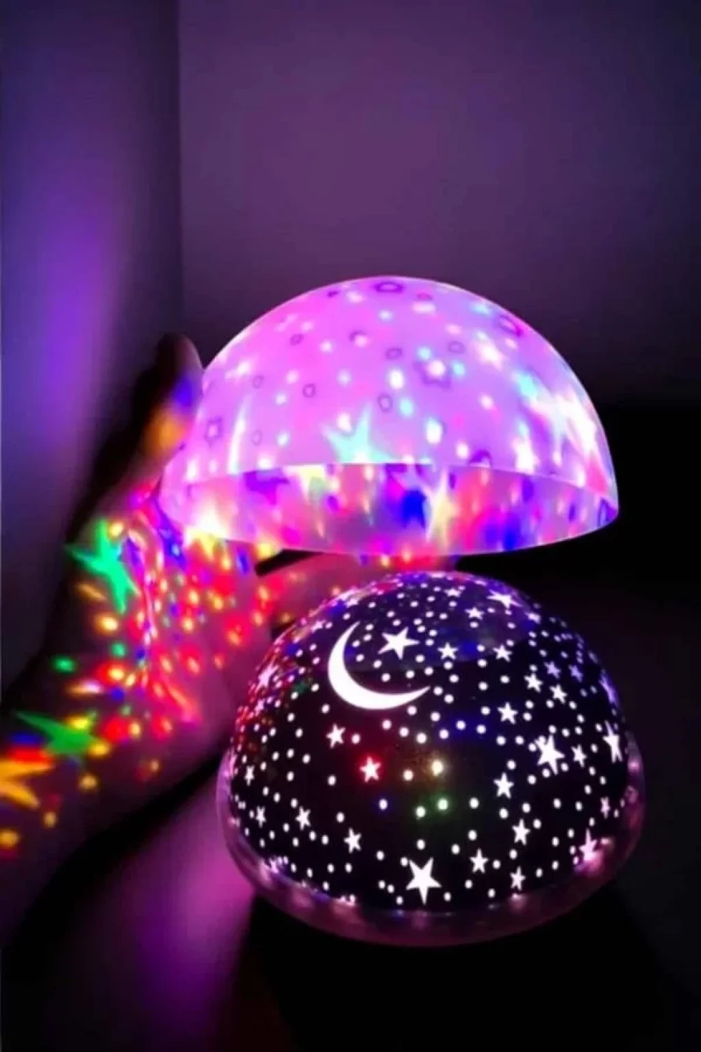Yıldızlı Gökyüzü Projeksiyon Gece Lambası, evdeki her köşeye büyülü bir hava katmak için mükemmel bir üründür. Mavi ve mor ışıkların döner yapısı, tavanınıza büyüleyici bir şekilde yıldızlar, gezegenler ve ayı yansıtarak eşsiz bir gece manzarası sunar. Özellikle çocuklar için harika bir gece lambası olan Star Master, karanlıktan korkan çocukların daha rahat uyumasını sağlar. Gözleri rahatsız etmeyen yumuşak ışığı, gece boyunca sakin bir uyku ortamı oluşturur. Ayrıca, ışığın seviyesini ve rengini ayarlayabileceğiniz fonksiyonlarla, odanızda tam istediğiniz atmosferi oluşturabilirsiniz. Dönen yapısı sayesinde tavanınıza hareketli yıldızlar ve gezegenler yansıtarak her an farklı bir görsel deneyim yaşamanızı sağlar. Şeffaf üst kapak sayesinde ışık doğrudan tavana yansıtılabilir ya da farklı bir yönlendirilebilir. 4 adet AAA pil ile çalışan bu projeksiyon gece lambası, enerji verimli bir kullanım sağlar ve her yere kolayca taşınabilir. Star Master, sadece çocuklar için değil, aynı zamanda gece atmosferi yaratmak isteyen herkes için mükemmel bir tercihtir.