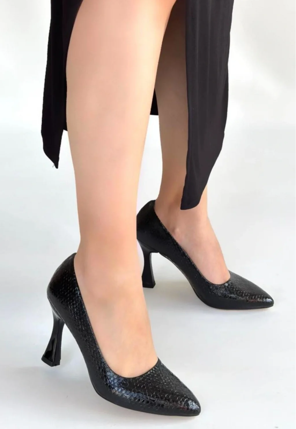 Merio Siyah Baskılı Rugan Topuklu Ayakkabı